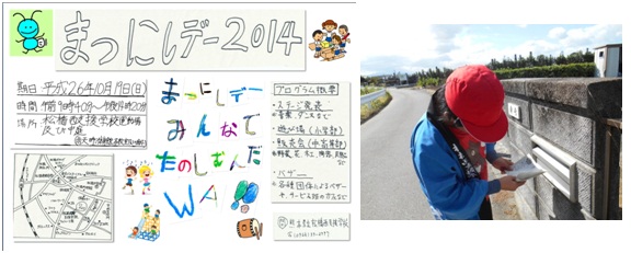 内容は各学部、学級で割り当てられたエリアにチラシを配布するというものです。手作りのチラシを一件一件ポストに入れたり時には手渡したり。