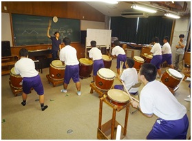 8月28・29日、「まつにし太鼓」の夏休み特別練習が本校の音楽室で行われました。中学部・高等部の太鼓メンバーが参加し、2時間の練習に汗を流しました。初日は、ばちの握り方や構え方など、太鼓演奏の基礎をみっちり教わり、二日目からはいくつかの叩き方のパターン練習をしました。2学期からは、週3回30分ずつの練習を行う予定です。10月19日の「まつにしデー」での演奏に向けて、しっかり練習に励みたいと思います。みなさん、応援よろしくお願いします。