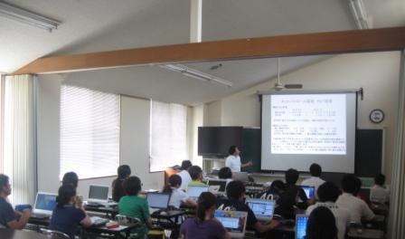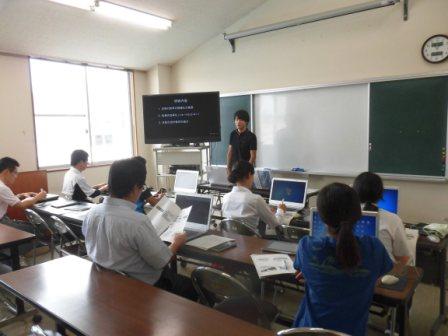 はじめに熊本県の学校教育における情報化推進事業を確認したり、ICT機器の活用を取り上げ、「パワーポイント」を活用した教材を実際に作成したりと、実践的な研修を行いました。今後の情報教育を行う上で職員間でも専門性の向上や、ICT教材・教具などの情報の共有を行っています。