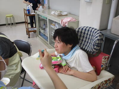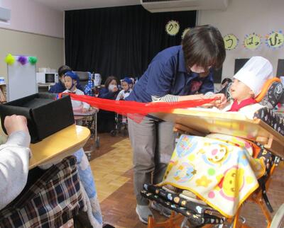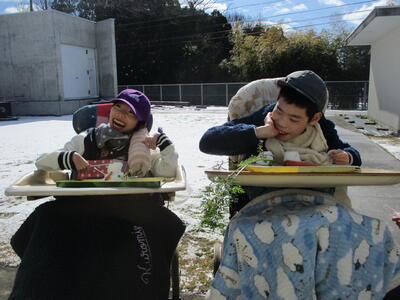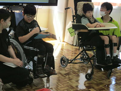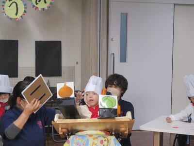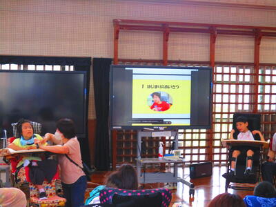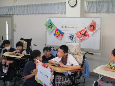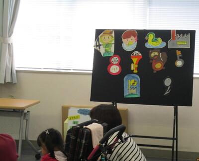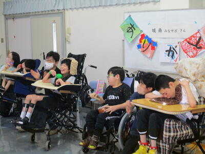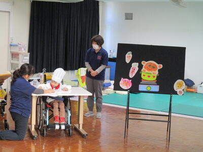 大きな絵本や仕掛け絵本、手遊び、パネルシアターなど沢山の興味深い内容を幼稚部、小学部のみんなは毎回とても楽しみにしています。