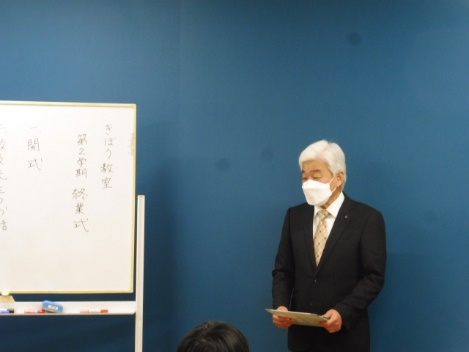希望教室で1学期の終業式を行いました。教頭先生のお話で、1学期に希望教室で取り組んだ「松東レクリエーション」の飾り作りや、「創立50周年記念式典」の壁画制作の様子などを振り返りました。その後、先日行われたフォトコンテストで投票が多かった2人の作品を「希望賞」として表彰を行いました。また、参加した8人の子どもたちにも参加賞として賞状を授与しました。