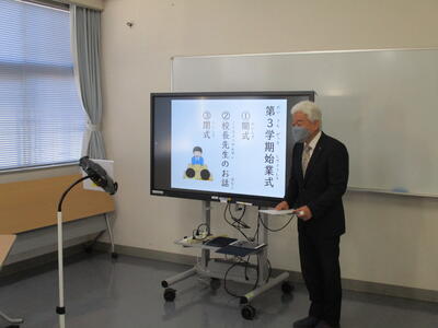 本校始業式は暑さ対策等のため、オンラインで実施しました。