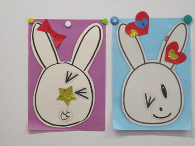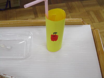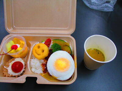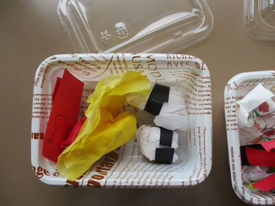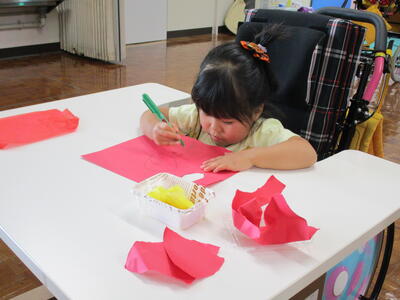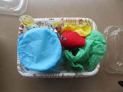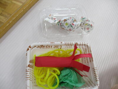 幼稚部では、色画用紙や花紙を使って、お弁当を作りました。