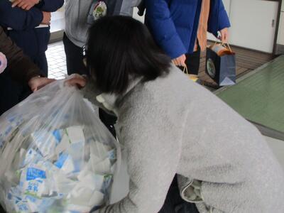 執行委員会のメンバーが代表で牛乳パックを渡しました。