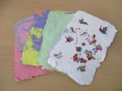 本校では、牛乳のパックを洗い、乾燥させたものを、リサイクルとして城南学園生活介護事業所じょうなん みなサポさんに定期的に渡しています。じょうなん みなサポさんでは紙すき等で新たな作品に生まれ変わっています。今回、牛乳パックを渡しました。その際、とてもきれいなしおりをいただきました。ありがとうございました!