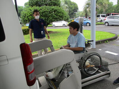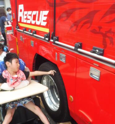 9月20日は熊本県こども総合療育センターの行事で、熊本県肢体不自由児協会主催の「移動ふれあい動物園」が行われました。心配された台風の影響もなく、快晴の中、実施できました。
