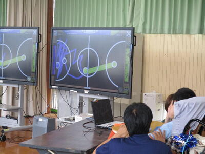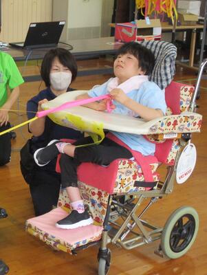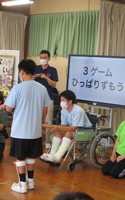 当日は、松橋支援学校中学部の皆さんの進行のもと、紙テープを互いに引き合うひっぱりずもうやパソコンの画面上でお互いに色を塗りあい、塗った面積が広い方が勝ちとなるeスポーツ等を行いました。どのゲームもとても盛り上がり、楽しく、充実した交流及び共同学習を実施することができました。