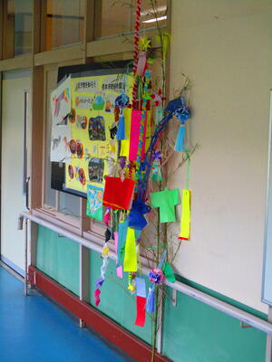 本校舎では、各学部で七夕飾りを作りました。毎年、地域の方からきれいな七夕飾りをいただいています。