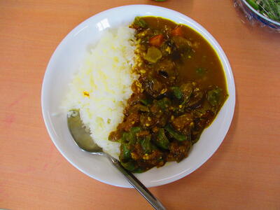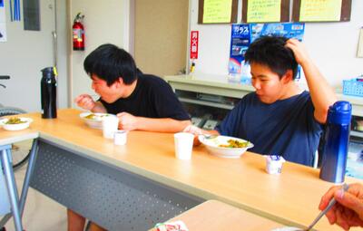 中学部では、自分たちで育てた野菜を使って夏野菜カレーを作って昼食で食べました。
