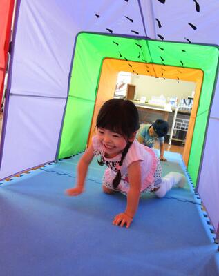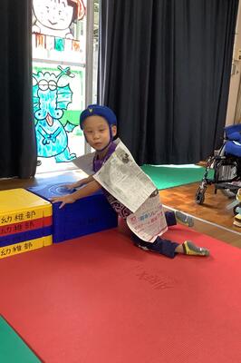 幼稚部では、プレイルームにアスレチックを設置してそれぞれの方法で楽しみました。