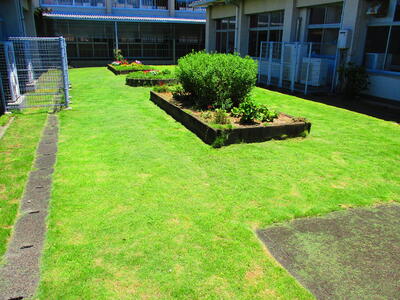 始業式に向けて、事務室の先生には、暑い中、毎日、草刈り等の環境整備に取り組んでいただき、気持ちいい環境の中、2学期をスタートしました。