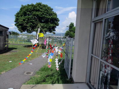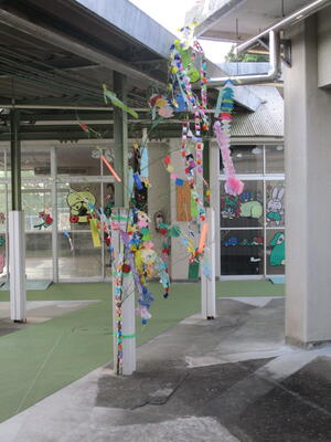 本校舎では、各学部で七夕飾りを作りました。毎年、地域の方からきれいな七夕飾りをいただいています。