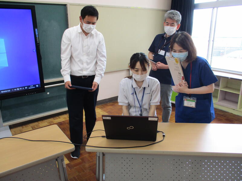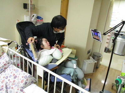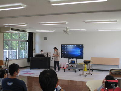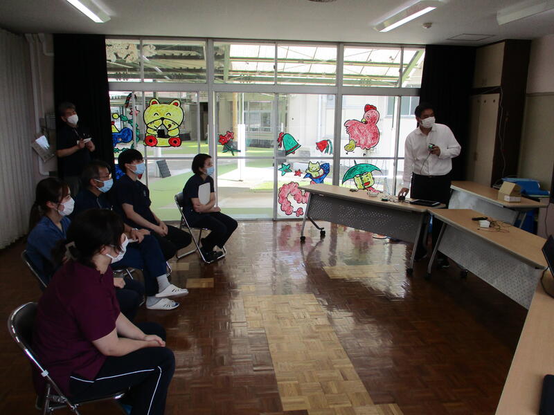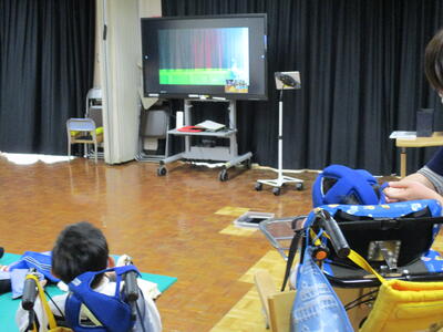 本校職員からこども総合療育センター職員の方へ向けたICT機器活用の研修をプレイルームにて行いました。今回紹介した機器は、視線入力装置、センサースイッチ、入力補助装置など様々です。使い方の説明の後、実際に機器を手にとって使っていただくと、驚きの声や質問もいただきました。今後学校とセンターで情報交換をしながら子どもたちのためにICT機器をどのように活用できるか考えていきたいです。