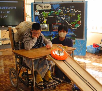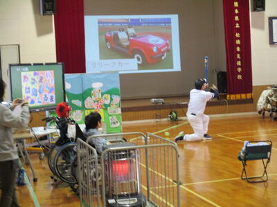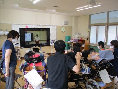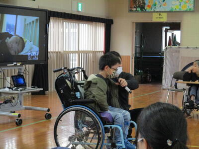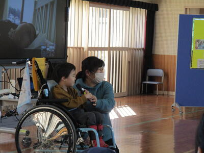 保護者さんと一緒にカローリングをしました。 訪問教育の友達はビデオで学習成果を発表しました。