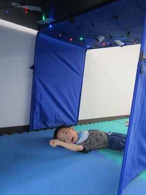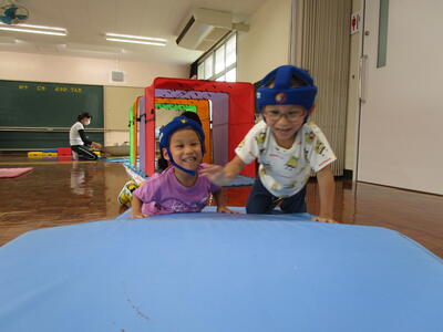 幼稚部では、プレイルームにアスレチックを設置してそれぞれの方法で楽しみました。