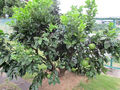 強い風が吹きました。 学校の晩白柚も大きくなりました。落ちずに無事でした。