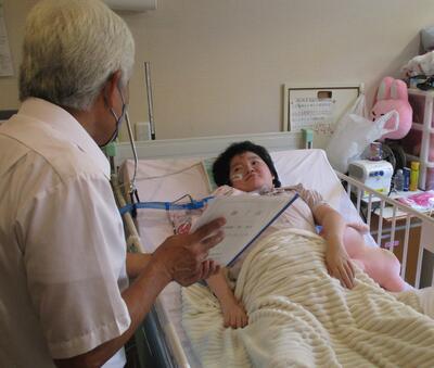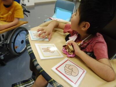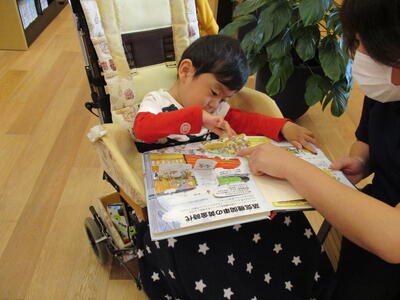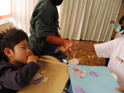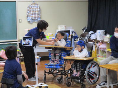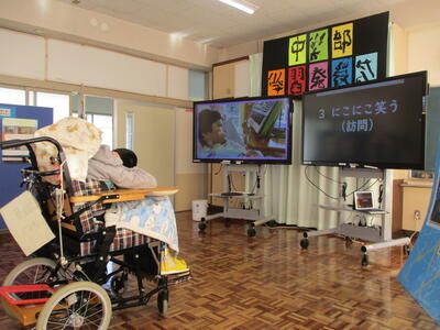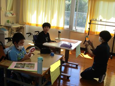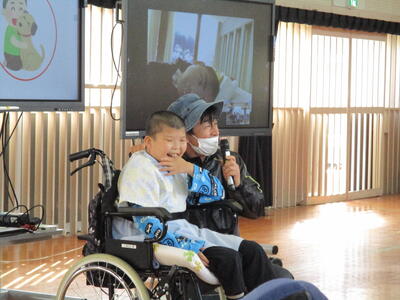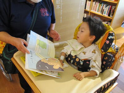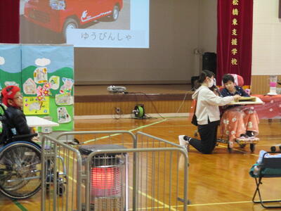 大きな絵本や仕掛け絵本、手遊び、パネルシアターなど沢山の興味深い内容を幼稚部、小学部のみんなは毎回とても楽しみにしています。