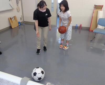狙いどおりボールに当たって大喜びしたり、わずかに外れたりと、それぞれ真剣に目標のボールめがけてボールを投げました。
