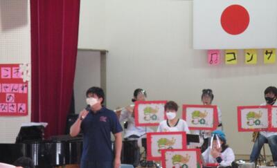 10月3日(月)は宇城市を中心に活動されている管楽器アンサンブルグループ「かあちゃんず」さんと本校50周年記念式典のテーマソング「松東ファミリー」を作曲いただいた、プロシンガーソングライターの大山 桂司さんをお招きして、松東ファミリーコンサートを実施しました。10月21日(金)の創立50周年記念式典のⅡ部でもお越しいただいてコンサートを行います。一緒に演奏したり、きれいな歌声を聞いたりと、楽しい一時となりました。