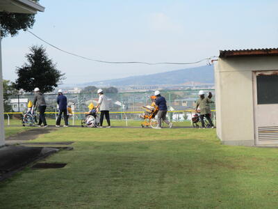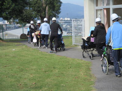 10月28日(金)、熊本県こども総合療育センターや近隣の希望の里各施設と合同で避難訓練を実施しました。