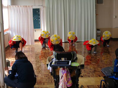 震度6強の地震が発生したという設定で、幼児児童生徒が安全に避難することや、避難所開設に向けた訓練を実施しました。幼児児童生徒も落ち着いて避難することができていました。実際の地震を想定し、緊張感のある訓練となりました。