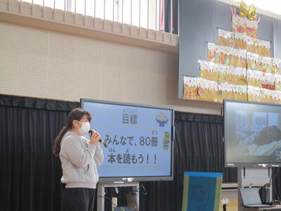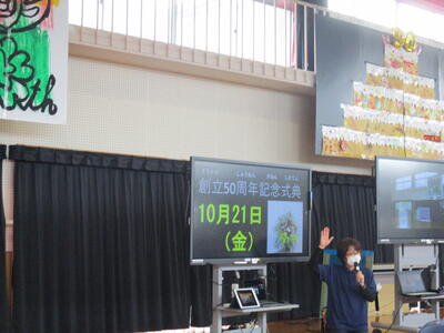 11月の全校集会では、新しい友達の紹介等とともに、10月21日(金)に行われた創立50周年記念式典の振り返りや読書月間の取組について、みんなで確認しました。