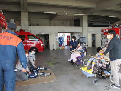 11月10日(木)、中学部では、地域の公共施設やその役割を知ることを目的に、宇城広域連合南消防署に校外学習に出かけました。快晴の中、福祉タクシーで出かけました。消防署の方にも大変丁寧に対応いただき、普段見ることができない色々な施設を見学することができました。