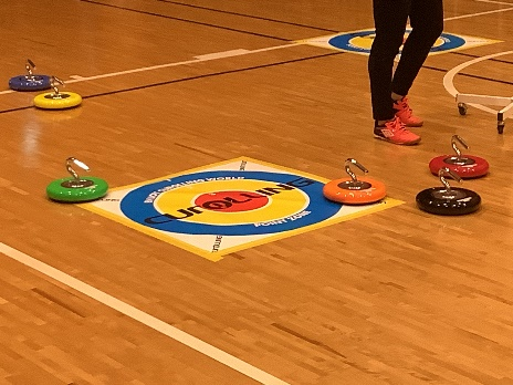 小学部高学年、中学部でカローリングを行いました。カローリングとは「カーリング」を基に体育館で行えるようにしたニュースポーツです。底にローラーが付いたストーンをポイントゾーンを狙って滑らせ得点を競います。カローリングが初めての子どもも多く、力加減やコースの調整など最初は苦戦していましたが、練習したり、チーム内でアドバイスを出し合ったりしてどんどん上達していきました。実際の試合になるとどの試合も接戦になり、一投毎に手に汗握る白熱した戦いになりました。