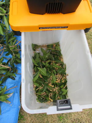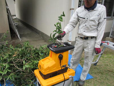 剪定した木の枝等はゴミを減らす取組を行っています。
