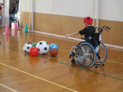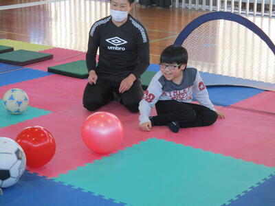 小学部3、4年生で体育を行いました。ウォーミングアップで準備運動、サーキットを行い、その後長縄跳び、ボッチャを行いました。ボッチャでは、2チームに分かれて対戦しました。チーム内でどこを狙って、どのコースから投げるか相談しながら一投ずつ大事に投げていました。回数を重ねる毎に上達していき、終盤の試合ではジャックボールの周りに多くのボールが集まりました。普段は体育館で授業する機会も少ないので、子どもたちは思い切り体を動かし、楽しんでいました。