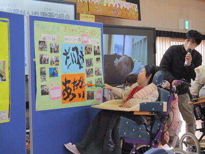 訪問教育の友達や、創立50記念式典に参加いただいた大山佳司さんやかあちゃんずさん、フラワーアート制作でお世話になったシンビレッジ吉村さんからの感想等を紹介しました。