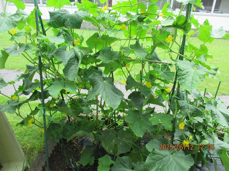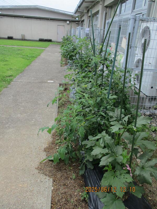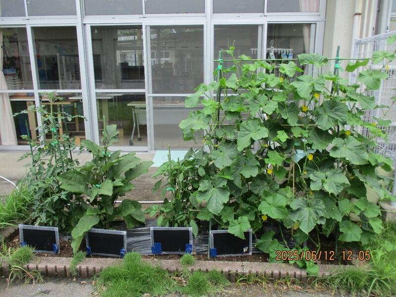 太陽の光シャワーと梅雨の雨を浴びて、子どもたちが育てている菜園の野菜がぐんぐん大きくなっています。