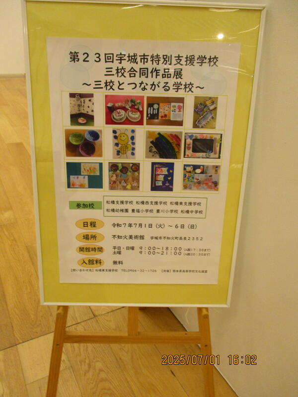 本日から、宇城市の不知火美術館(宇城市不知火町高良2352)で「第23回宇城市特別支援学校三校合同作品展~三校とつながる学校~」が始まりました。