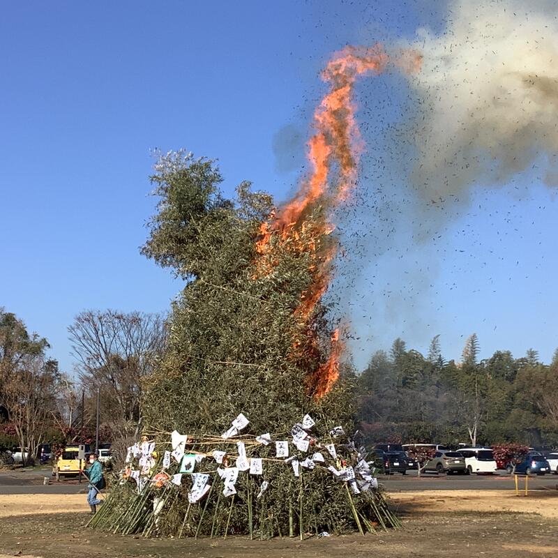 正月飾りや書初めなどを集めて燃やす日本の伝統行事です。