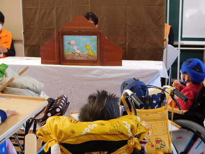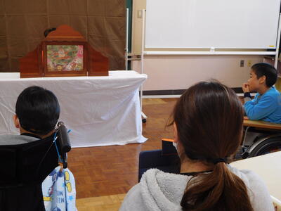 毎回子どもたちがとても楽しみにしているおはなし会。今月は、クリスマスにちなんだパネルシアターや手遊び、大型紙芝居などを見せていただきました。子どもたちは、おはなしが始まるとたちまち物語の世界に引き込まれ、自分が物語の世界の中に入った気分で楽しみました。リラの会の皆様、いつもありがとうございます。