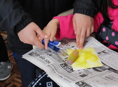 もうすぐクリスマス。今日はクリスマスツリーのオーナメントづくりです。丸めたり、てのひらでトントン伸ばしたり、麺棒を使ったり・・それぞれのやり方で、紙粘土のひんやりした感触を楽しみながら形を作りました。仕上げは明日。今年はどんなクリスマスツリーができるのでしょうね。楽しみです。