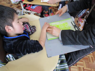 お正月準備の一つが年賀状書き。今日は小学部の子どもたちが、年賀状書きに挑戦です。大根やにんじんで作ったスタンプを押したり、習字に挑戦したり・・・様々なやり方で、心のこもった年賀状を作成しました。完成後、ポストに投函しに行く予定です。