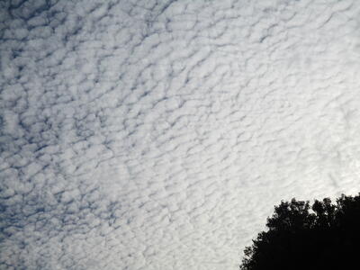 先週末の寒さから一転、今日は空気は冷たいものの太陽の日差しが温かい日中となりました。冬の空と言えば なんだかどんよりとしていて グレーの雲が垂れ込めている イメージですが、今日は青い空に、秋の雲とはまた違った形状の雲が空一面広がっていました。 凍雲(いてぐも)とか、うね雲、 天気予報では筋状の雲 などの言葉を聞いたりしますが、果たして今日の雲は何雲なのでしょうか?