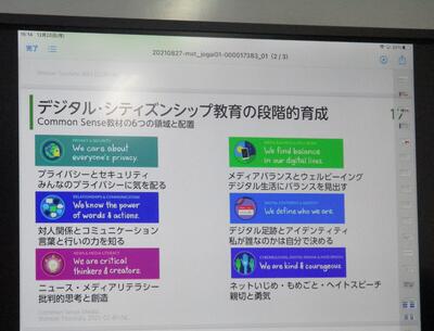いよいよ来月に迫った公開授業研究会(オンライン)。本研究会に係るICT業務について、Webによる参加申し込み、Youtubeでの動画配信、などの進捗状況を確認しました。さらに、次回の校内研修として、デジタル・シチズンシップ教育についてを取り上げる予定であることが周知されました。