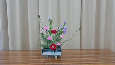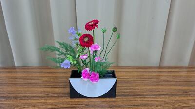 同じ花材ですが、花器や活け方の違いで、違ったものに見えるのがとても興味深いです。