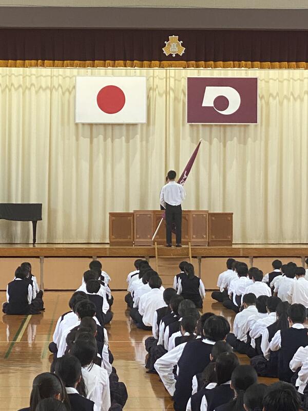 5月7日(水)GW明けの登校日。本日は全校朝会が体育館にて行われました。生徒会による生徒の整列の呼びかけから会の進行まで上手に流れて行われたと思います。