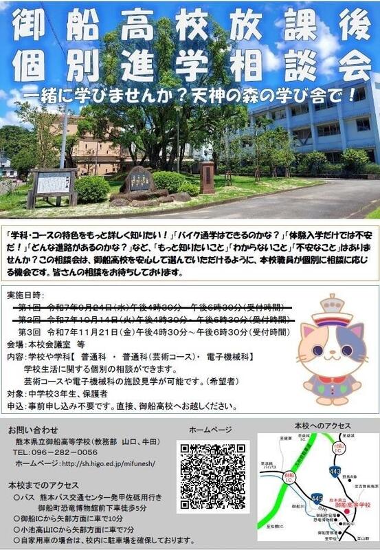 2025年11月1日(土)13:30~15:30 御船高校セミナーハウスで行います。