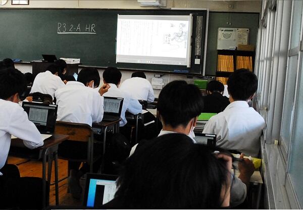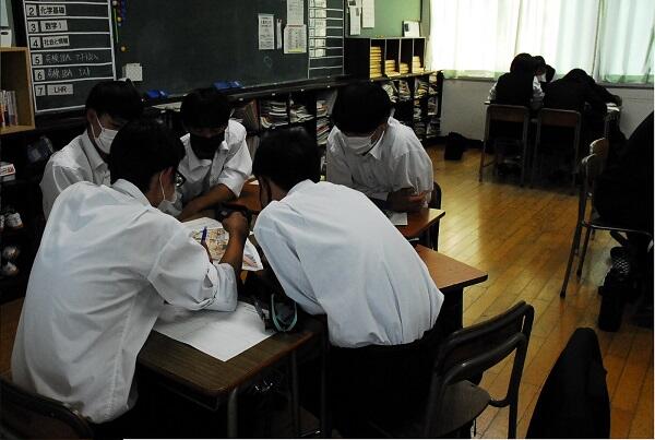 今回は、「もうひと踏ん張り、結婚差別。~変わりゆく、結婚差別の現状~」(人権教育ネット「ふらっと」より)を教材にし、学習しました。近い将来に直面するであろう「結婚」がテーマであり、生徒たちには、改めて自身の人生について考えを巡らす姿が見られました。