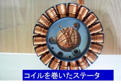 モーターのコイル部分(茶色の部分)は手で巻きました。414回巻きました。