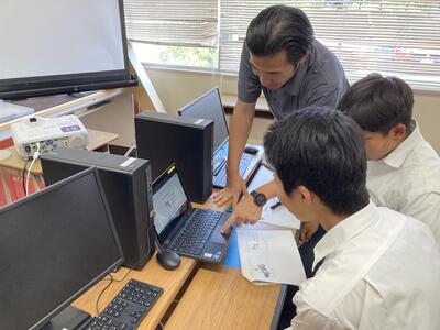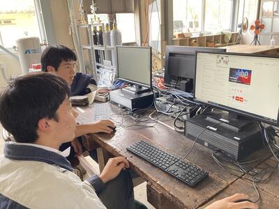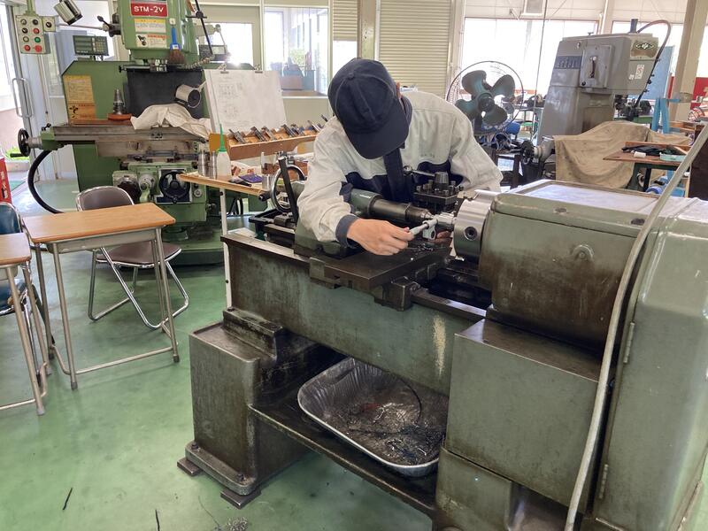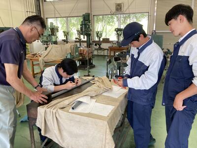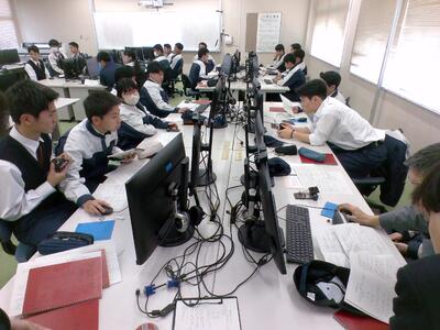 1年生は、今回が初めて10人程度の班に分かれてローテーション実習です。ソフトウェア実習やコンピュータ製図(CAD)実習、電気工事士、手仕上げなどを行いました。