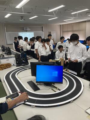 熊本県立技術短期大学校(県技短)から、学生さんがマイコンカーの交流に来られました。