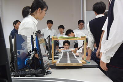 今回の参加メンバーは全員が10月26日に開催されるマイコンカーラリーに出場する生徒で、大変忙しい中での挑戦となりました。ロボット製作は大変時間がかかる取り組みで、マイコンカーの製作にも4~5ヵ月以上の時間がかかっています。やっと完成しても、研究と調整にはその倍以上の時間が必要で、大変忙しい中でしたが、挑戦を決めました。