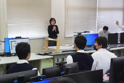 【電子機械科】県立技術短期大学校の先生と学生さんが本校に来られました。