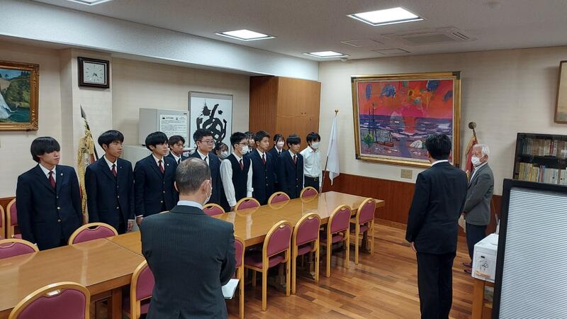 「御船高校の誇りをもって頑張ってほしい」との激励に、生徒たちは凛とした表情で応えました。