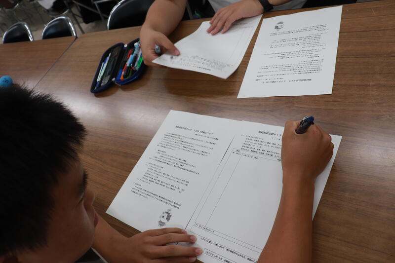 7月19日(金)御船高校公認キャラクターである「ミフネコ」の推進活動についての説明会がありました。会議室に多くの生徒が集まり、ミフネコのプロフィール設定について考えました。
